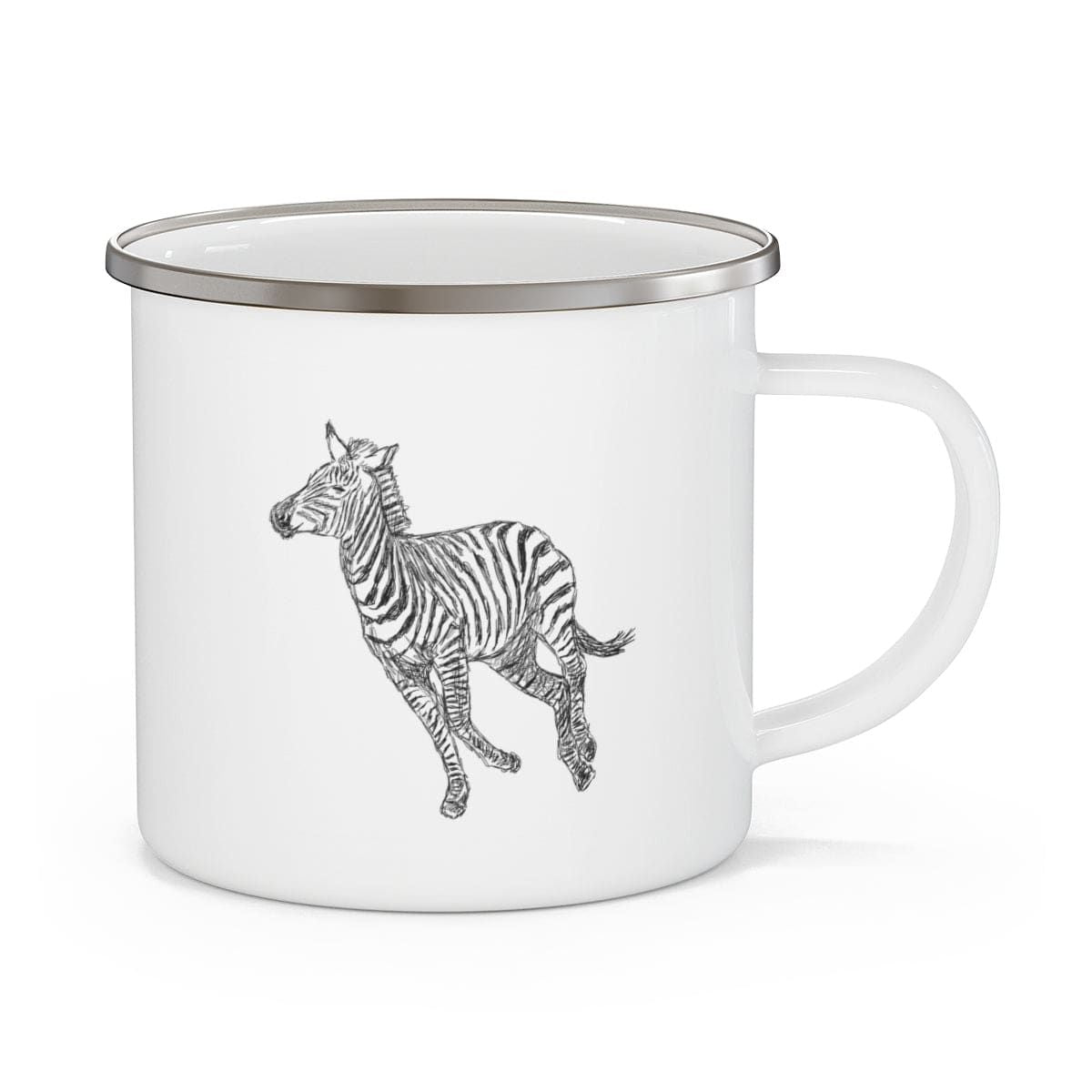 Enamel Camping Mug, Galloping Zebra Line Art Drawing Print