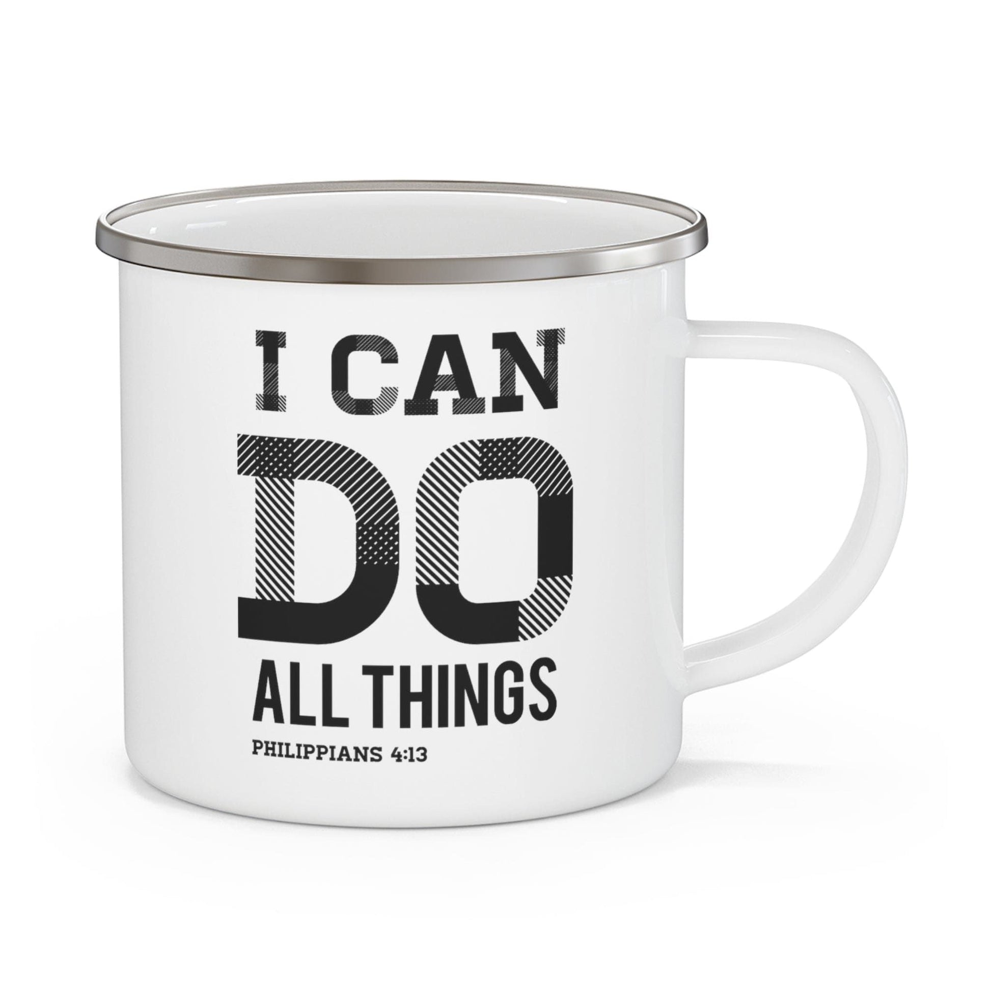 Enamel Camping Mug, i Can Do All Things Philippians 4:13 Black Illustration
