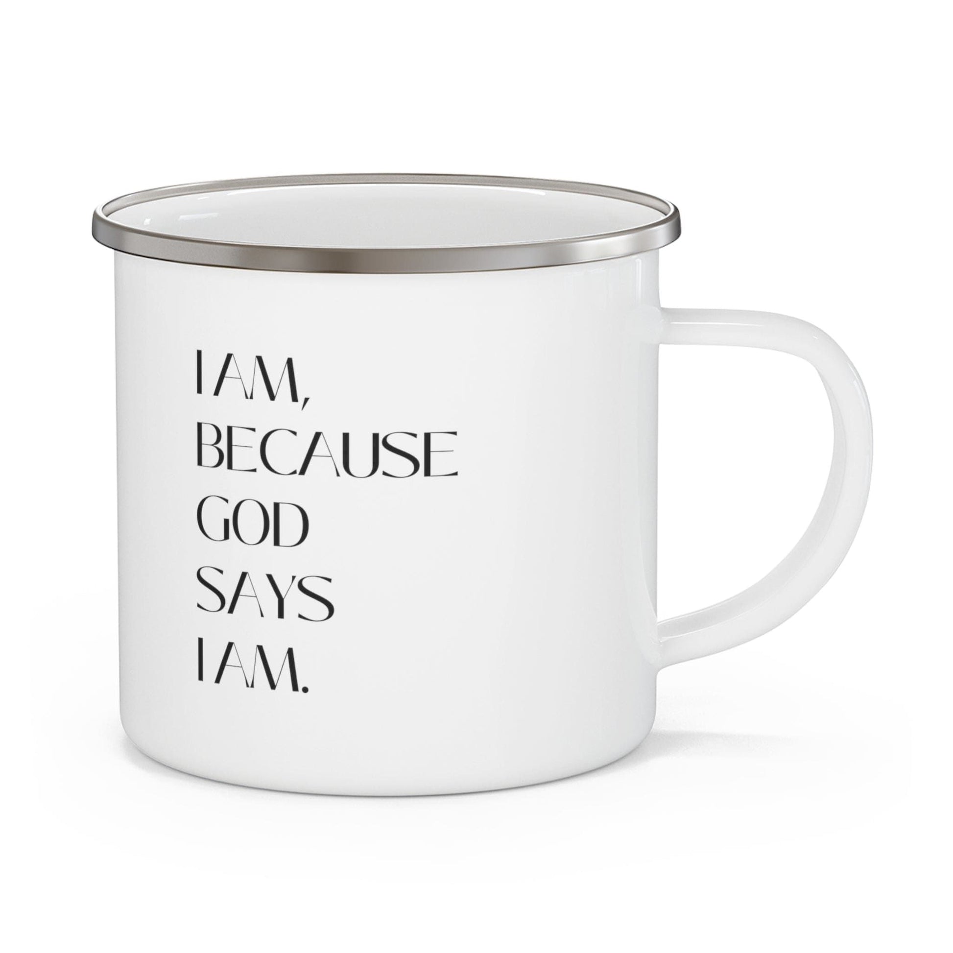 Enamel Camping Mug, Say It Soul, i Am Because God Says i Am, i Am, Christian, Inspirational Quote, Self Worth