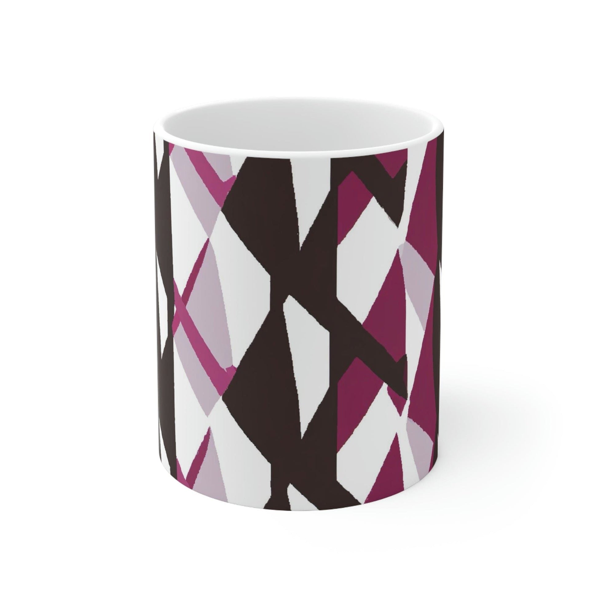 Mauve Pink And Maroon Geometric Pattern. Warm-up with a nice cuppa out of this customized ceramic coffee mug. Personalize it with cool designs, photos or logos to make that "aaahhh!" moment even better. It's BPA and Lead-free, microwave & dishwasher-safe, and made of white, durable ceramic in 11-ounce size. Thanks to the advanced printing tech, your designs come to life with incredibly vivid colors – the perfect gift for coffee, tea, and chocolate lovers.