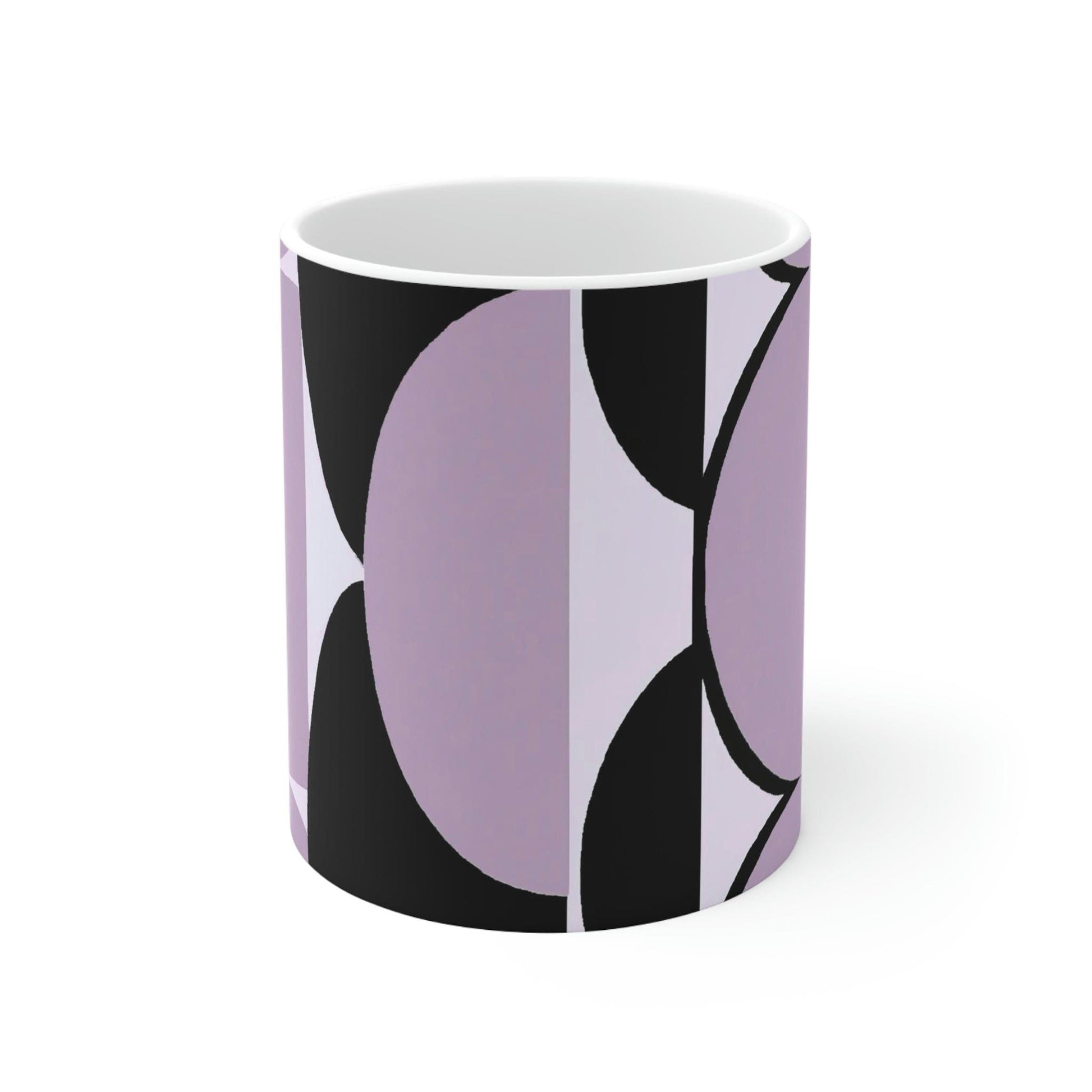 Decorative Ceramic Coffee Mug 15oz, Geometric Lavender And Black Pattern