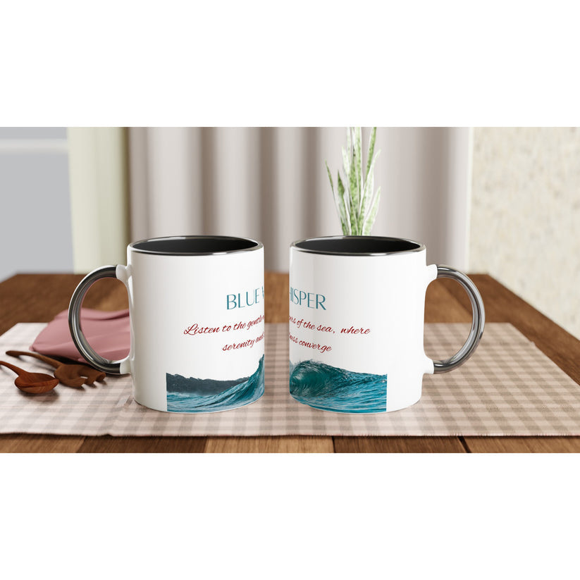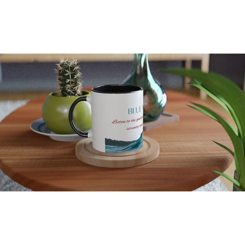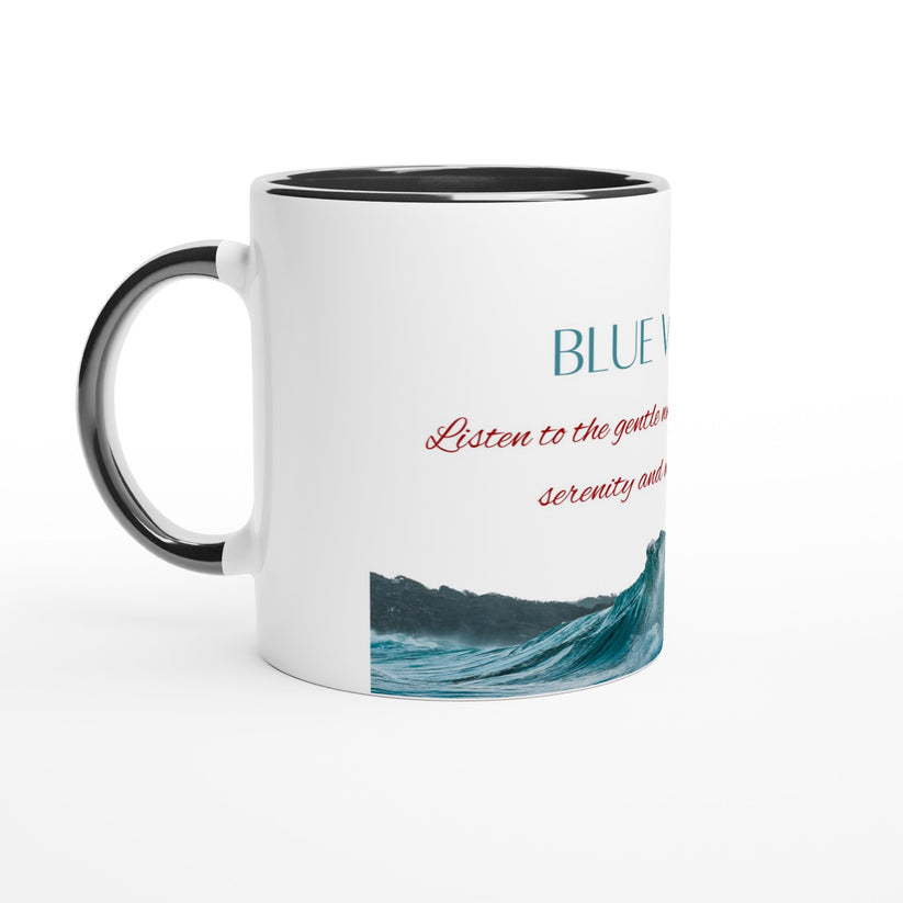 Find tranquility with our "Blue Whisper" ceramic mug. This beautiful mug features a serene ocean scene, capturing the perfect balance between serenity and wilderness. The soft blue hues inside and along the rim create a calming atmosphere, while the bold white design showcases the beauty of the coast.