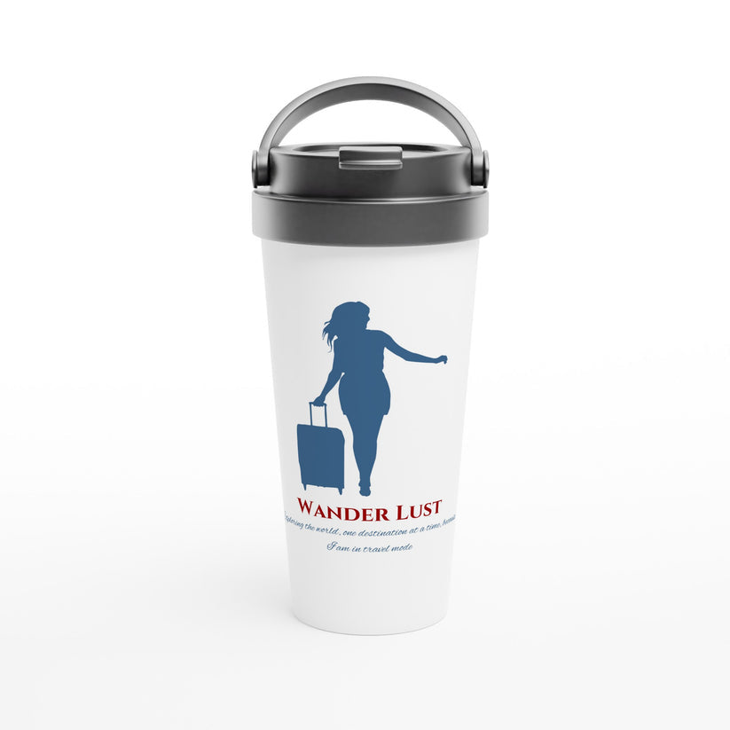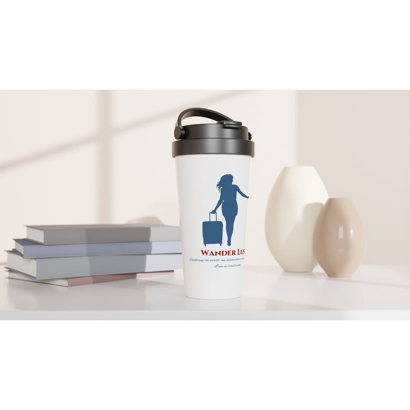 Fuel your wanderlust with our Wanderlust Explorer Stainless Steel Travel Mug. This stylish and durable travel mug features a captivating silhouette of a woman with a suitcase, symbolizing the spirit of adventure and exploration. Perfect for your morning coffee on the go or your favorite beverage during your travels, this mug will keep your drinks hot or cold for hours.
