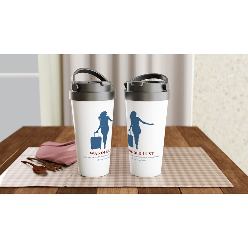 1.Wanderlust Explorer Stainless Steel Travel Mug Design By HadiArts