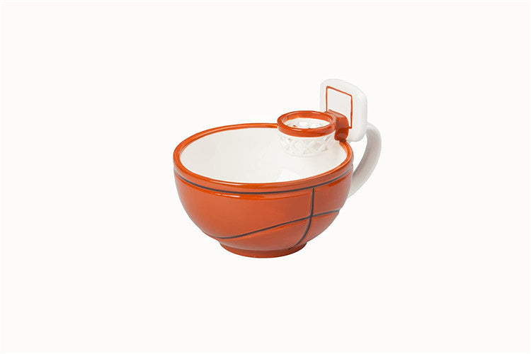 ADAPTABLE AND PERFECTLY SIZED -Oversized 16-ounce mug is shaped like half of a basketball with a hoop attached to the back of its handle; and can be used as a mug or bowl. It measures 7" long x 5.25" wide x 4.75" high.