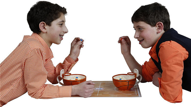 START YOUR MORNINGS WITH FUN! Play with your food with this original basketball mug with an attached hoop. Perfect for scoring mini-marshmallows into cocoa; cereal into milk; crackers into soup; or toppings onto ice cream! Something to root for in your morning routine!