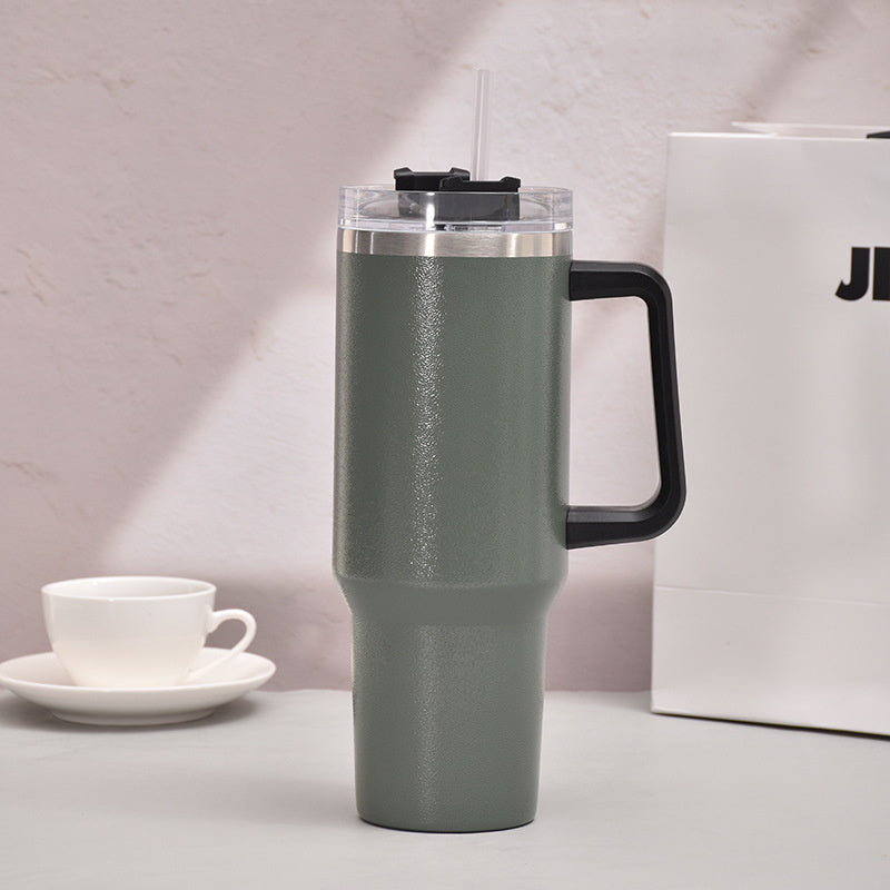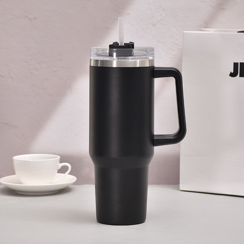 40oz Handle Car Cup with pipette stainless Steel insulated Cold beer cup portable ice cup with handle; Insulated Reusable Leakproof Stainless Steel Water Bottle Travel Mug Iced Coffee Cup