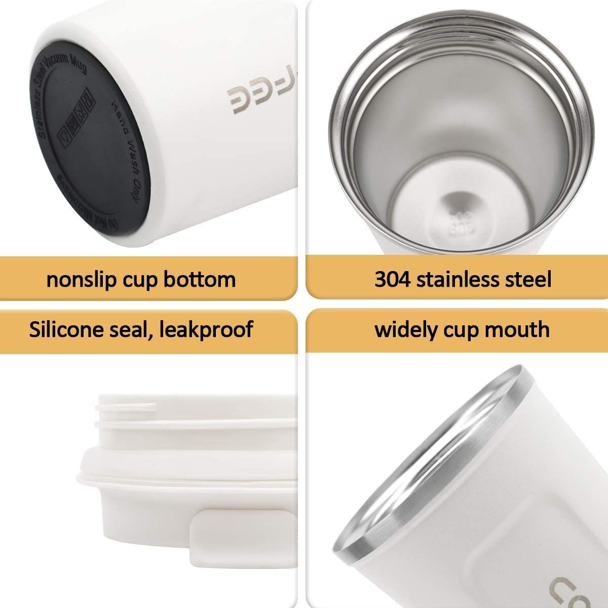 Leakproof Design - The coffee mug lid comes with an airtight silicone seal that prevents the drinks from spilling. Air Vent on the lid allows beverages to flow out smoothly; without gushing or overflowing.The rubber design at the bottom prevents the cup from slipping or tipping.