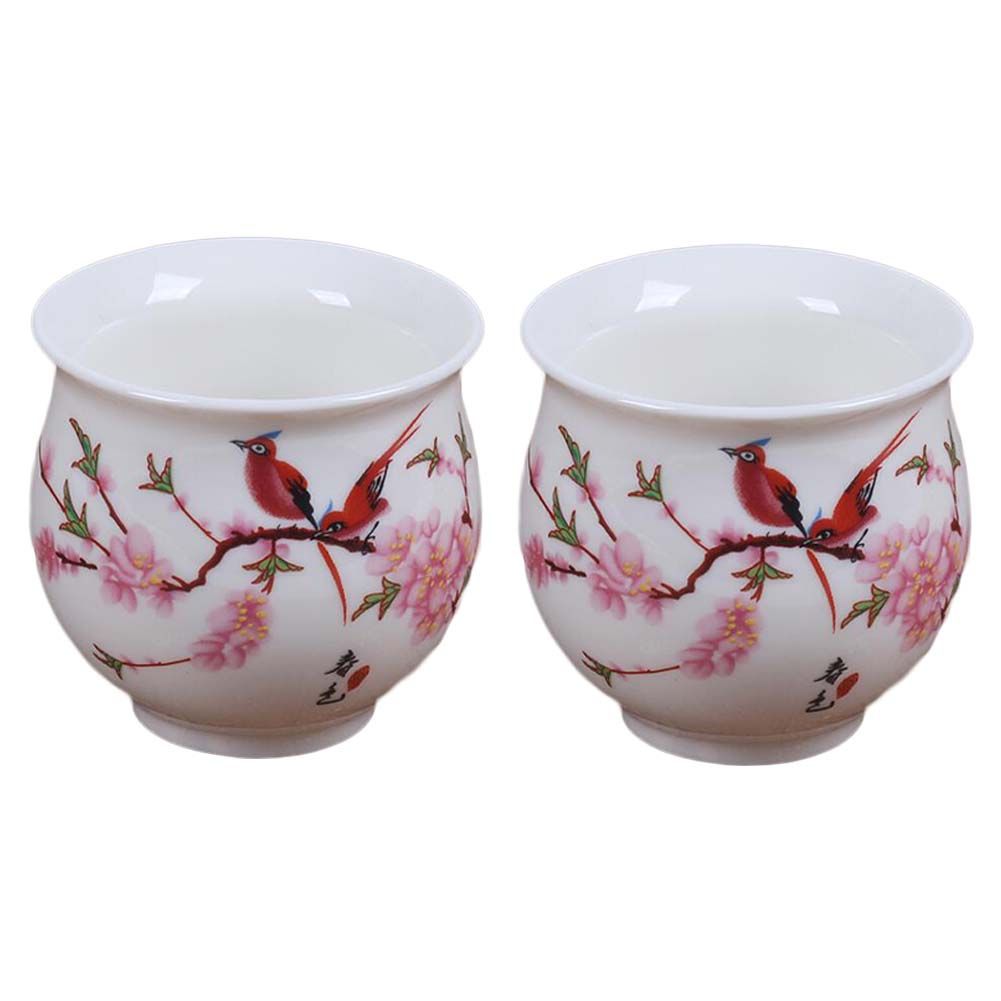 2-Pack 3.4 oz Chinese Ceramic Cups Set Traditional Teacups Peach Blossom Handcraft Porcelain Mugs Set