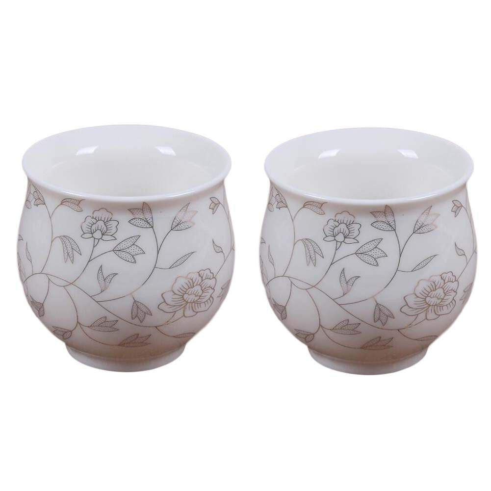 2 Pcs 3.4 oz Chinese Porcelain Teacup White Kongfu Tea Cups Gold Leaves Mugs Japanese Tea Cups